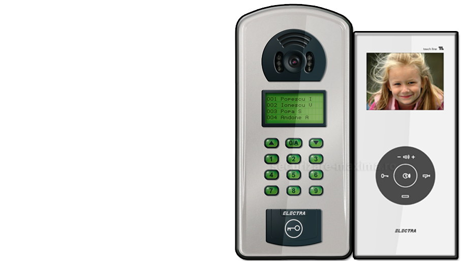 Controlati accesul persoanelor in interiorul proprietatii dumneavostra cu ajutorul sistemelor de audio/video-interfonie marca Electra, care s-au facut remarcate pe piata prin calitatea deosebita si pretul accesibil. Accesul din exterior se poate face doar cu ajutorul cartelei ori cu acordul unei persoane din interior care actioneaza comanda usii de intrare. Posibilitatea vizualizarii persoanelor care solicita accesul datorata tehnologiei video asigura un grad sporit de securitate.